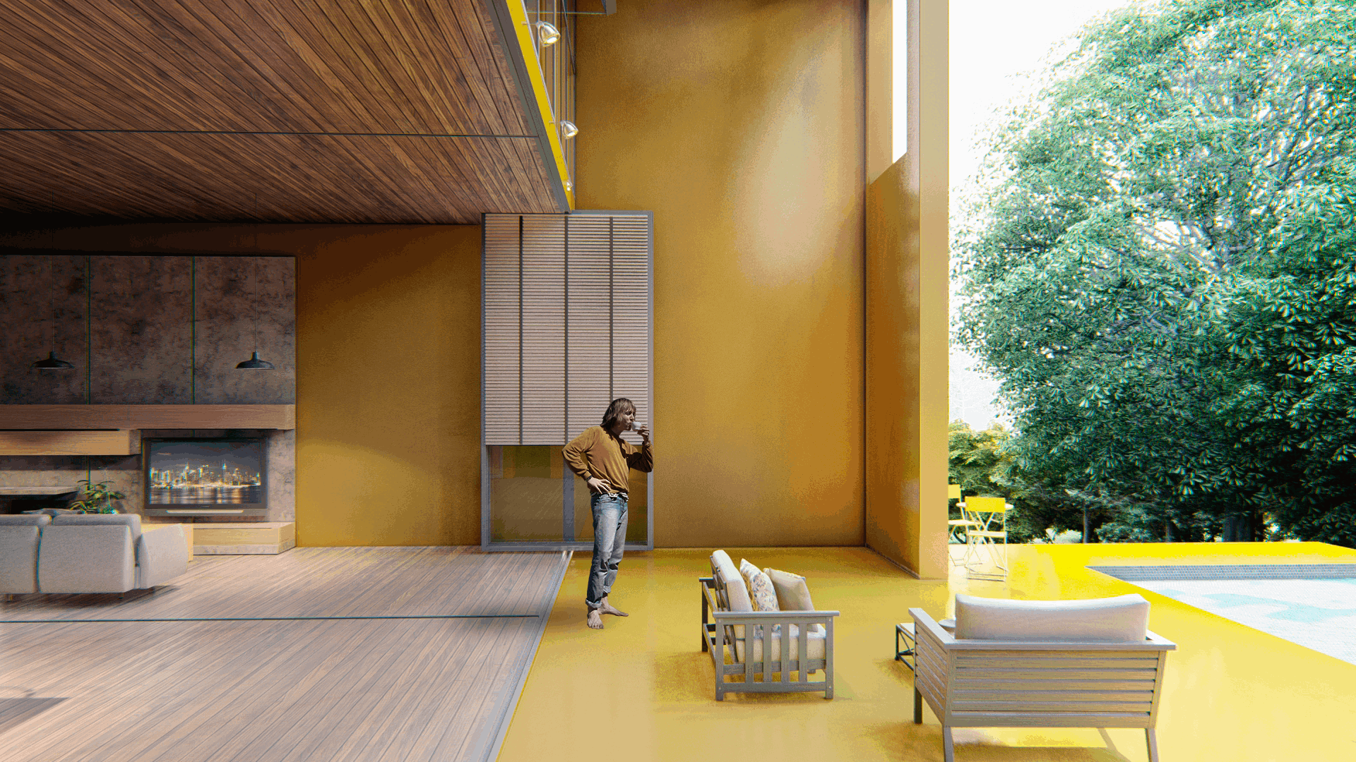 All warm colors, including yellow, create a noticeable warm feeling in the room. This is why we perceive the space as comfortable or cozy. The effect is much more noticeable when combined with brown, wood and other warm colors.